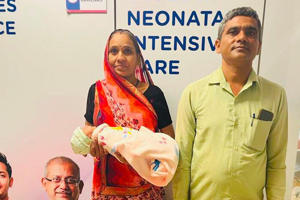 Ratani Patel and Virendra Patel are from Mumbai. Virendra works as a scrap merchant security guard, earning Rs 40,000 per month, and Ratani is a homemaker. Ratani had multiple severe cases of endometriosis and diabetes, due to which she was unable to conceive. With proper medical management and proper consultation with her gynecologist, she conceived twins. But her pregnancy journey was never smooth. She has to go through an emergency C-section due to rupture of the amniotic sac and early labor pain. The twin baby boys were delivered at the 27th week of gestation, of which one twin expired and the other twin baby boy survived. The baby had an extremely low birth weight of 960 grams and was extremely sick and weak. The tiny one needed NICU care immediately (Neonatal Intensive Care Unit) as he had severe respiratory distress and a congenital heart defect called “Patent Ductus Arteriosus”. This condition can let oxygen-poor blood move the wrong way. This can weaken the heart muscle, causing heart failure and other complications if the surgery isn’t done at the right time. The baby boy also had other complications like retinopathy of prematurity and anemia, and due to his extremely low birth weight, he needed CPAP support. The condition was aggravating so much that the team of doctors led by Dr. Suresh Birajdar had to take a call. Side by side, the cost of the NICU stay was also increasing, and parents were stressed about how they would be able to pay for the treatment.